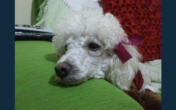 A Mindy é uma Poodle muito sapeca. Ciumenta e muito companheira.